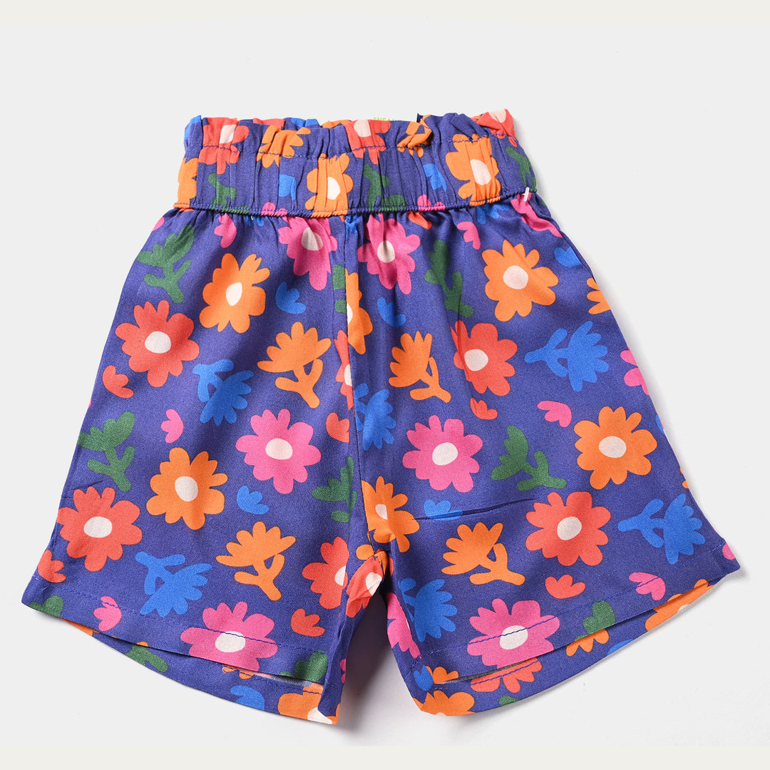 Infant Girls Cotton Viscose Short Printed Blue Flower