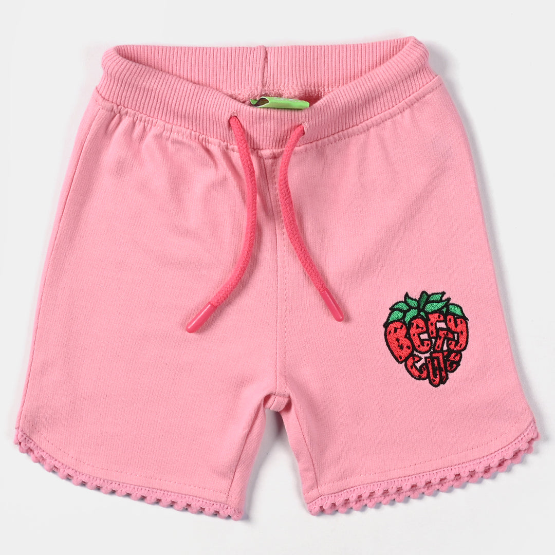 Infant Girls Cotton Terry Knitted Short Berry Cute-Candy Pink