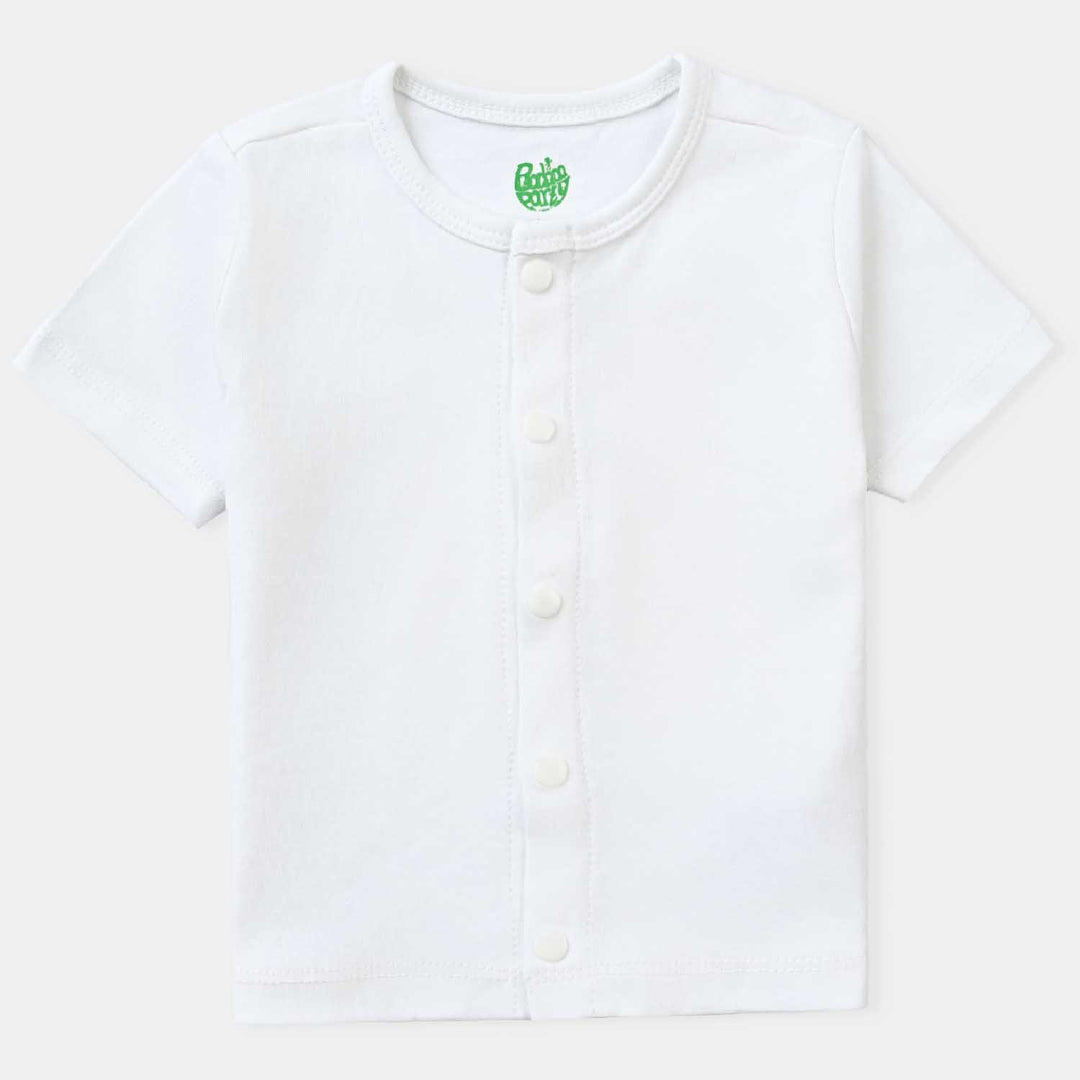 Infant Boys Cotton Interlock Front Open T-Shirt-White