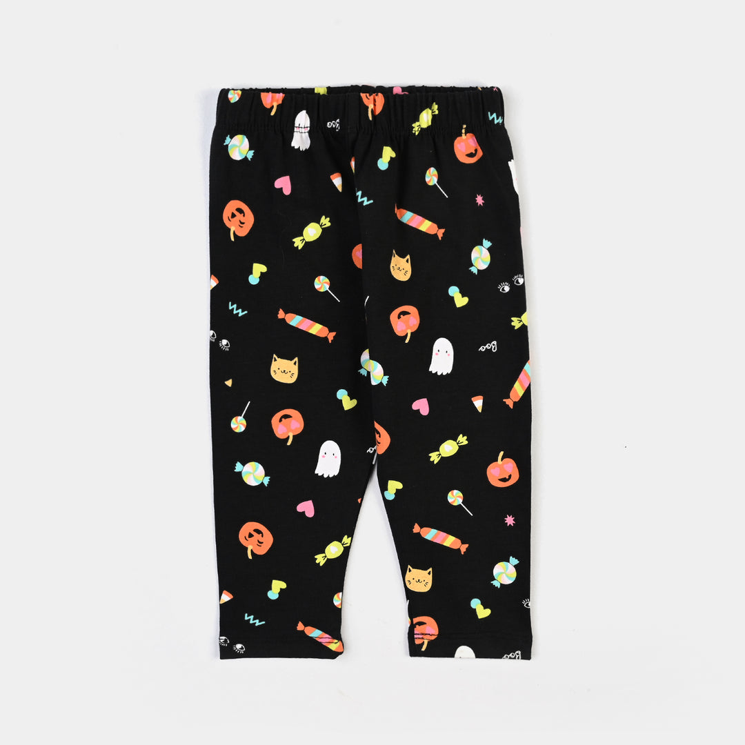 Infant Girls Lycra Jersey Printed Tights Candies-BLACK