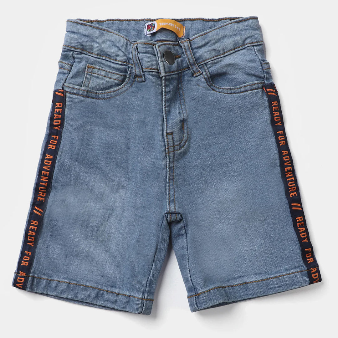 Boys Denim Stretch Short Ready For Adventure-Blue