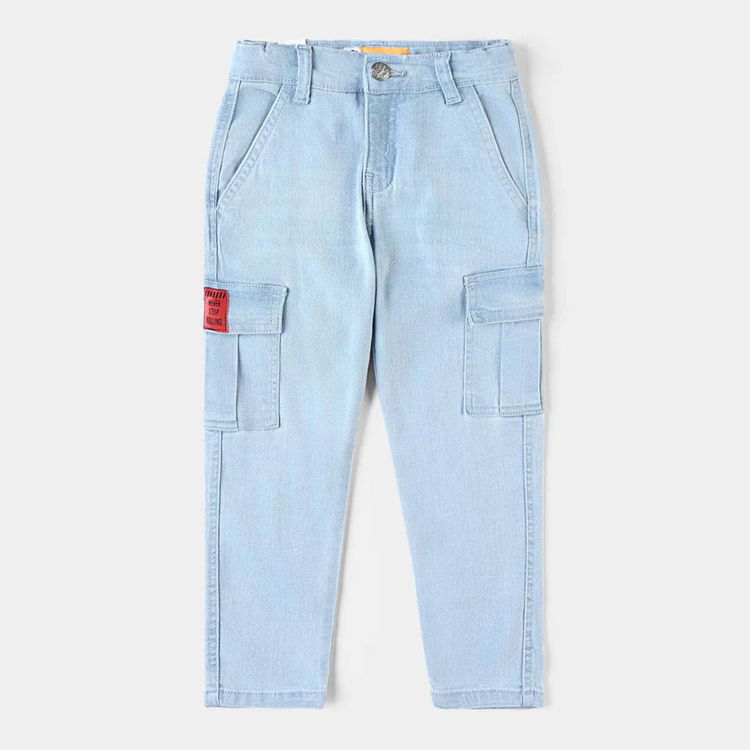 Boys Denim Stretch Pant Basic Cargo-Ice Blue