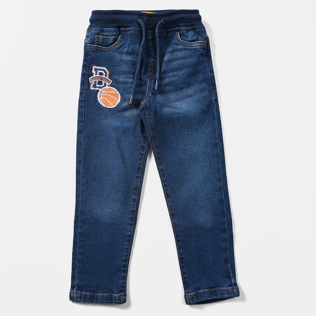 Boys Denim Stretch Pant Basket Ball-Mid Blue
