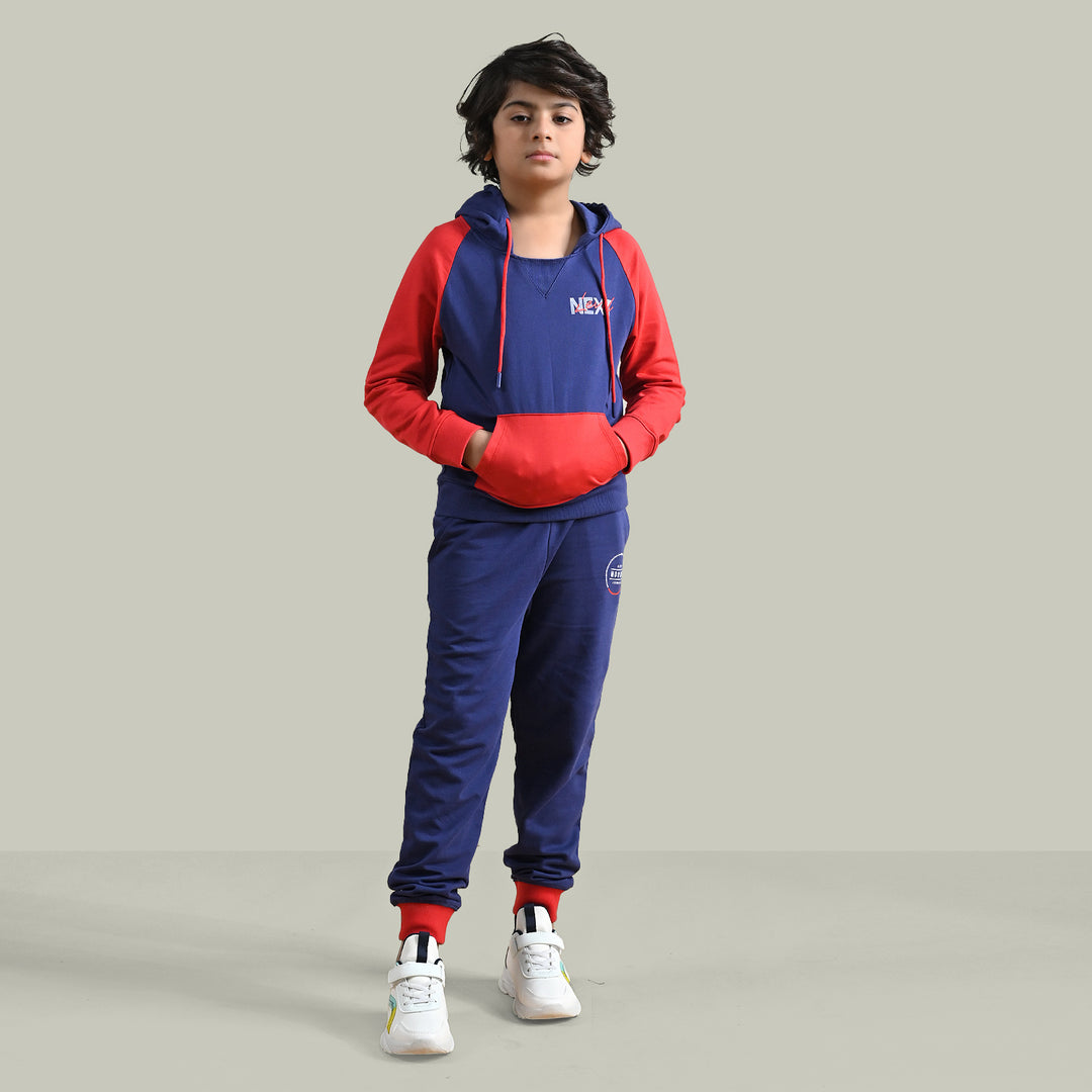 Boys Cotton Terry 2 Piece Suit Next Level-Navy/Red