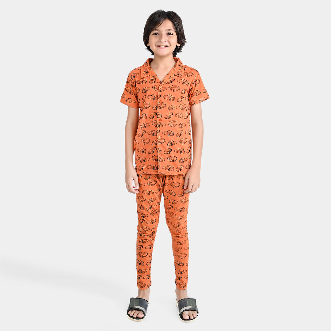 Boys PC Jersey Knitted NightWear Cars-Apricot Or