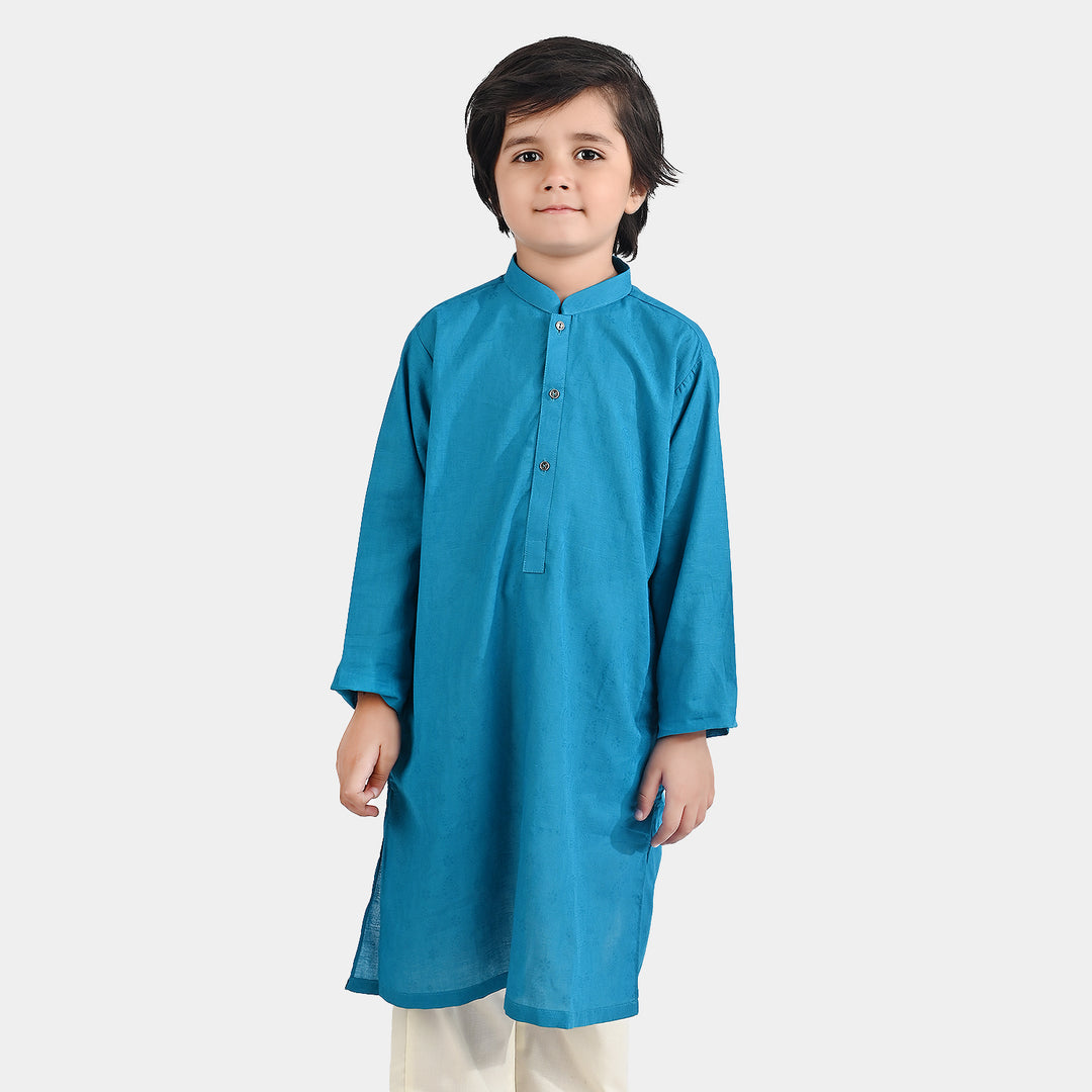 Boys Jacquard Printed Kurta (Self Print)-T.Green