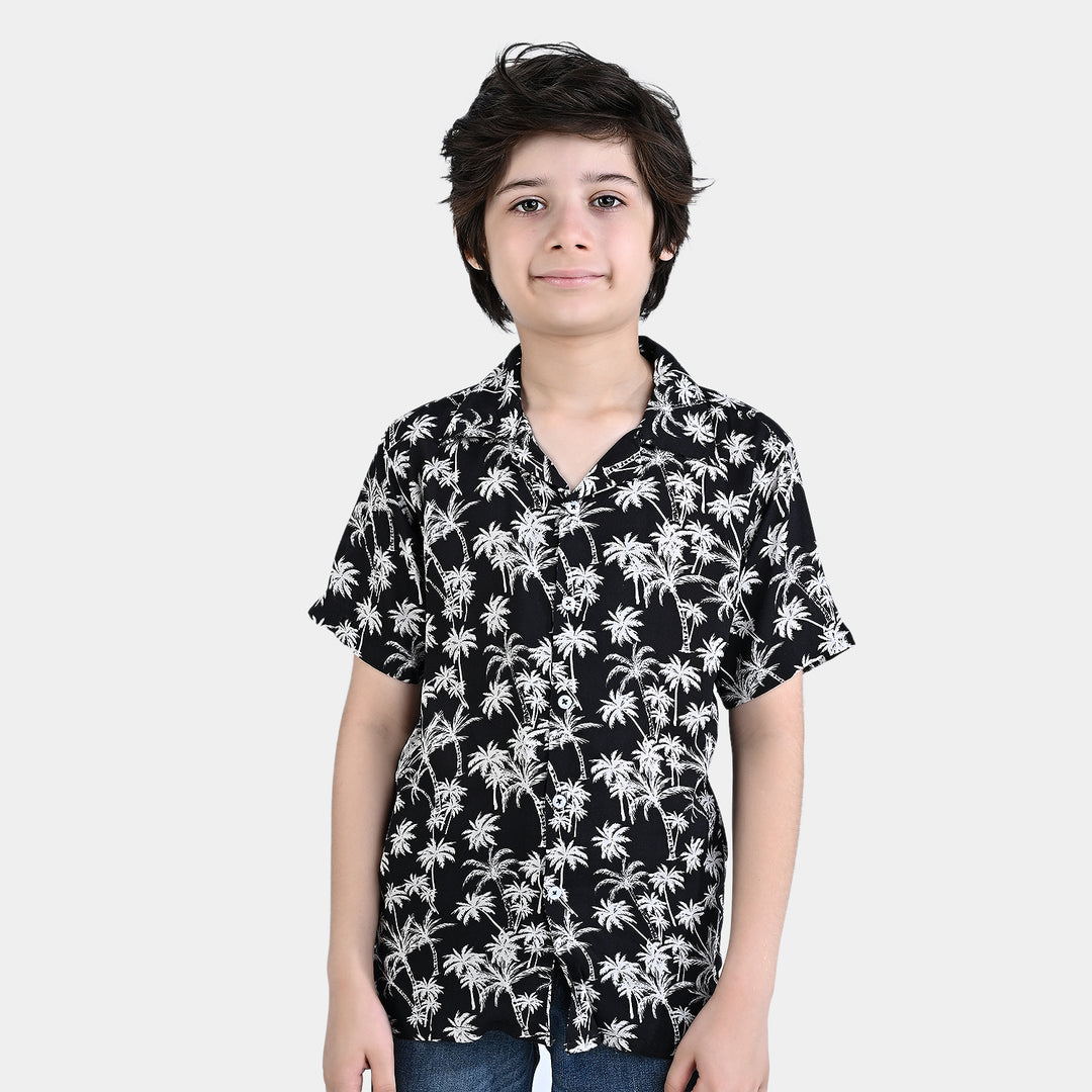 Boys Cotton Viscose Casual Shirt H/S (Palm Trees)-BLACK