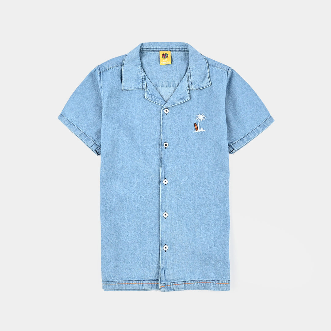 Boys Denim rigid Shirt H/S Surf Club-Mid Blue