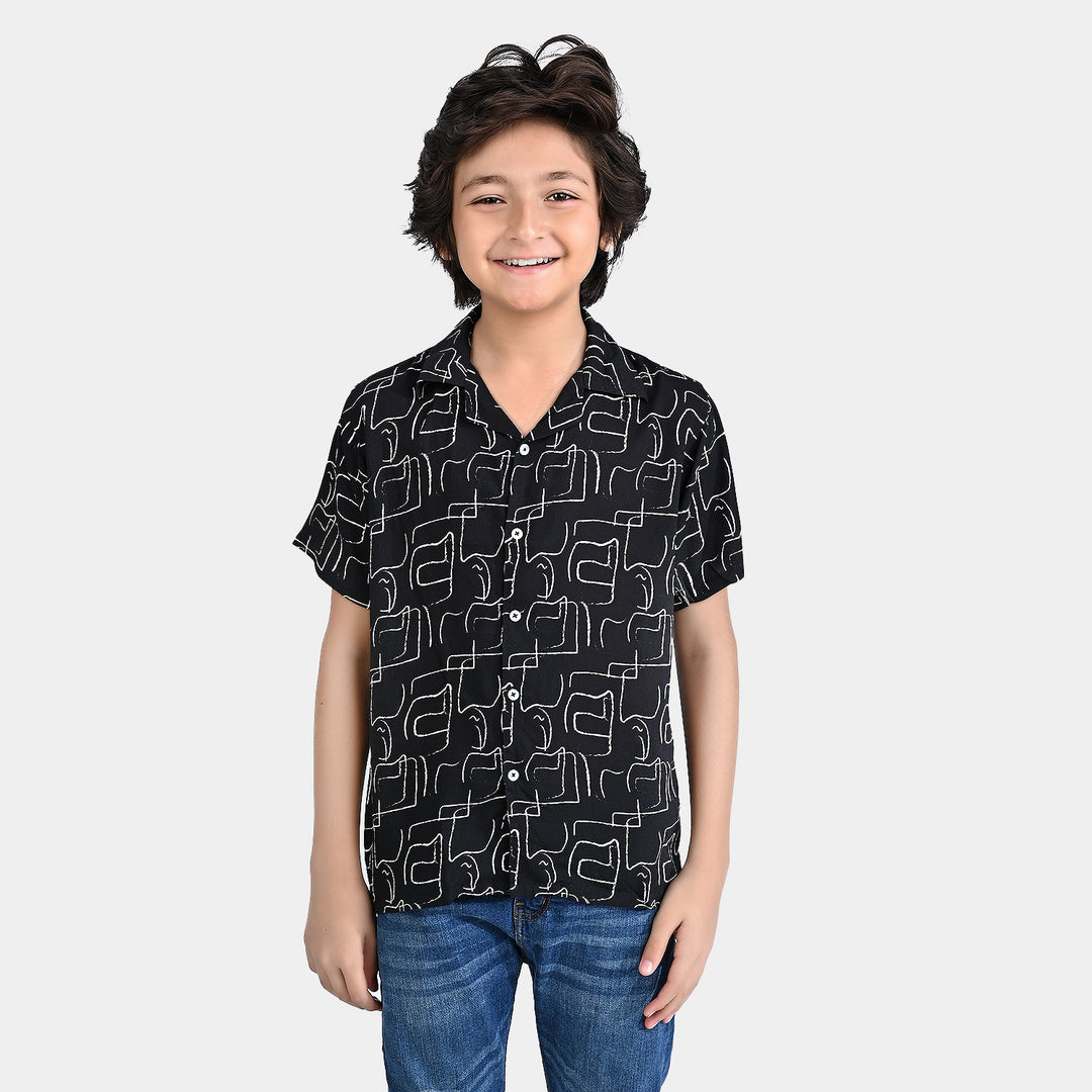 Boys Cotton Viscose Casual Shirt H/S (Lines)-BLACK