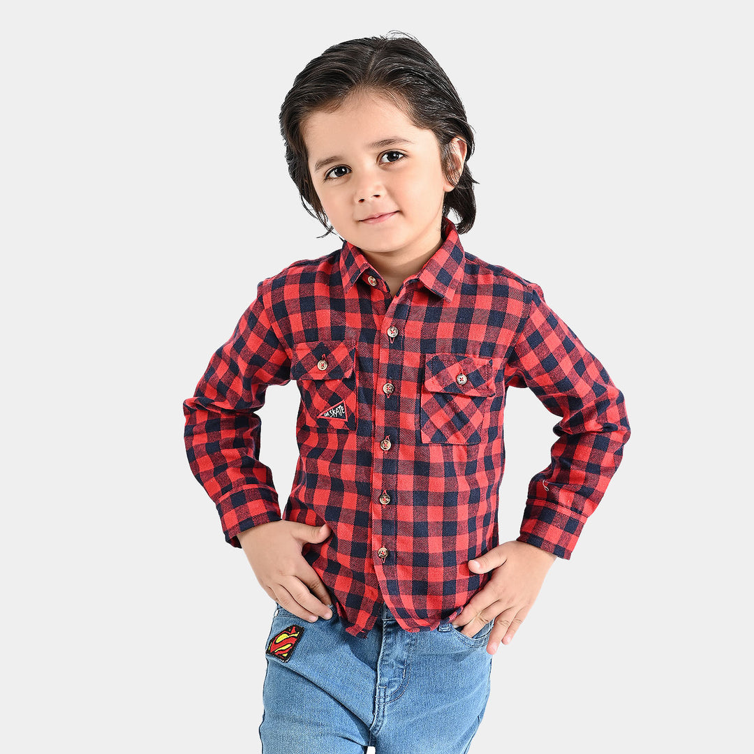 Boys Flannel Casual Shirt F/S (Go Skate)-Red