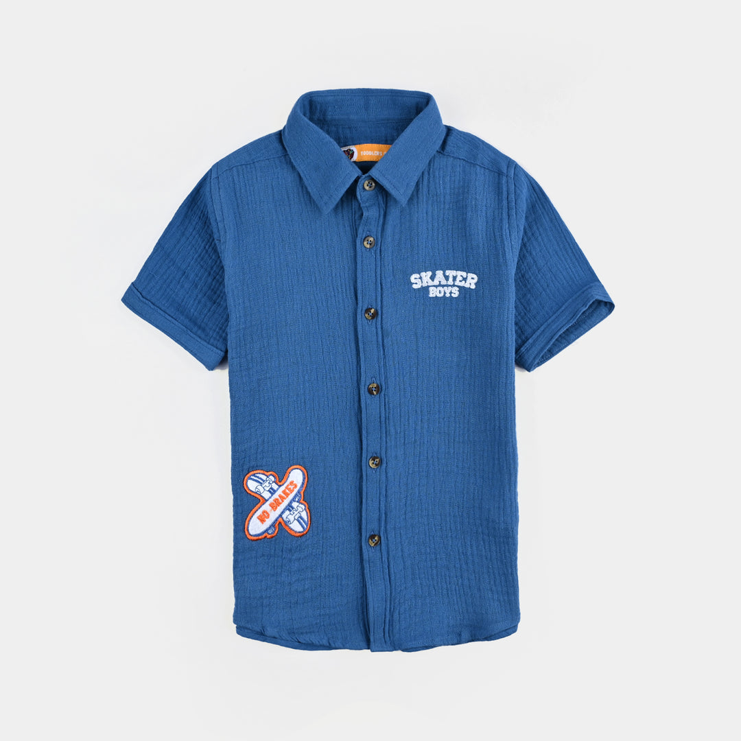 Boys Cotton Slub Casual Shirt (SKATE BOARD)-NAVY