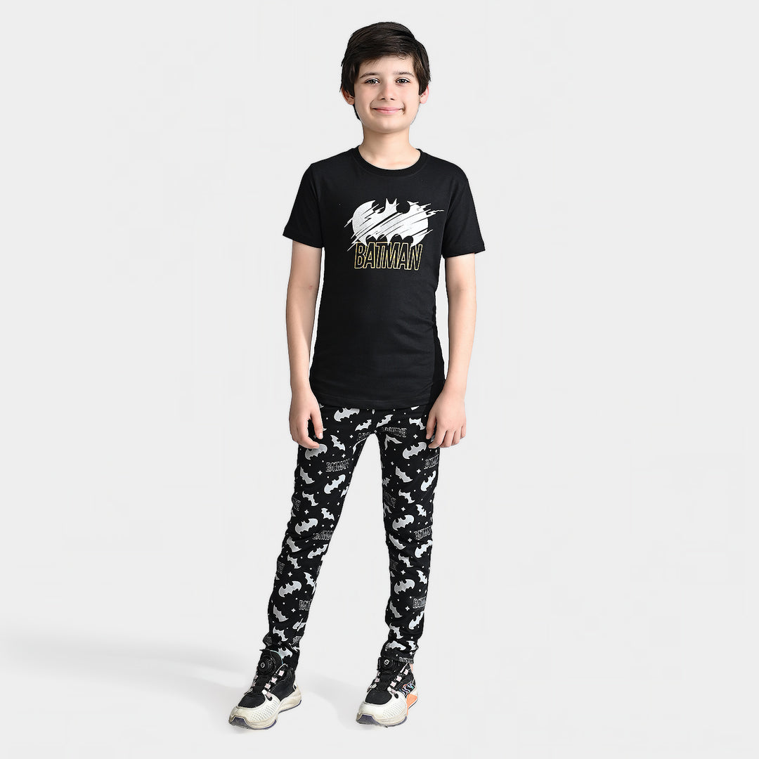 Boys Poly Cotton Jersey Knitted Nightwear-Jet Black