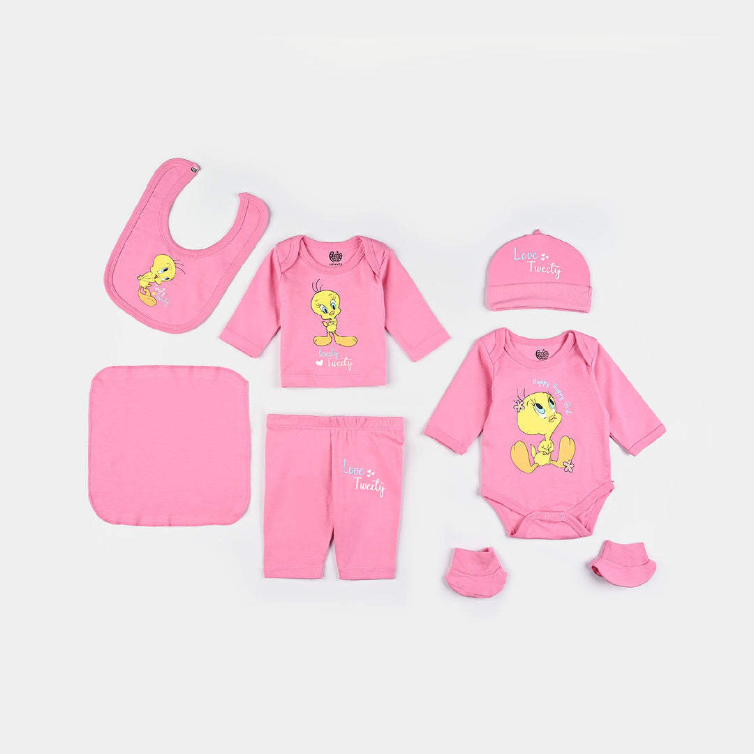 Infant Girls Cotton Interlock 7 Piece Set Character-Pink