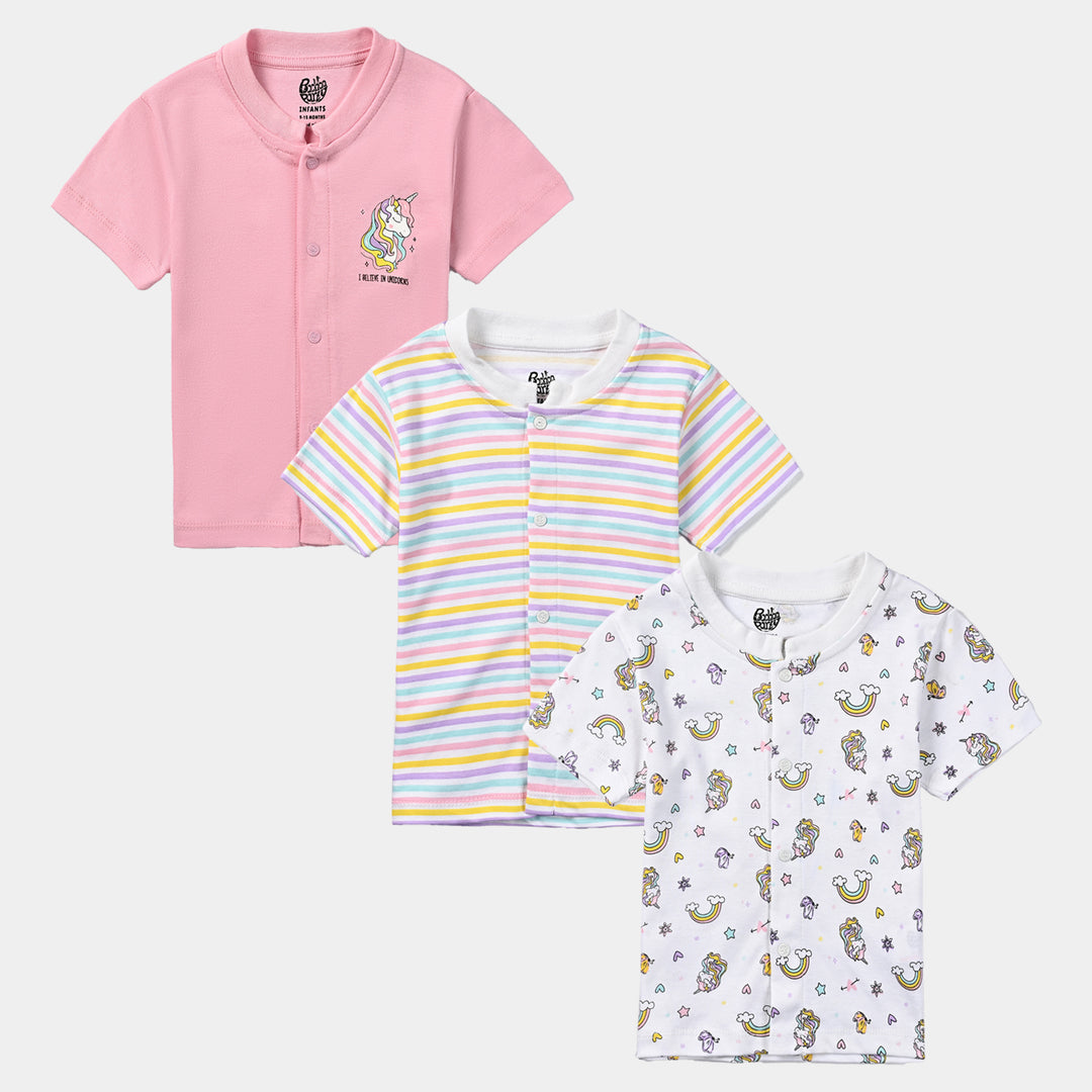 Pack Of 3 Infant Girls Cotton Interlock Cardigan-Mix