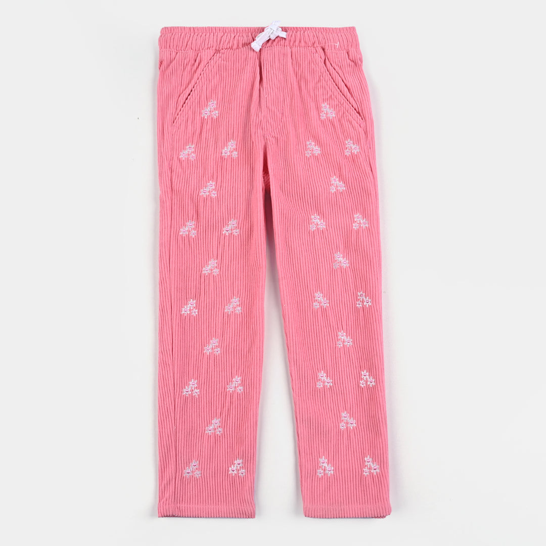Girls Corduroy Cotton Pant Flower Bunch-Pink