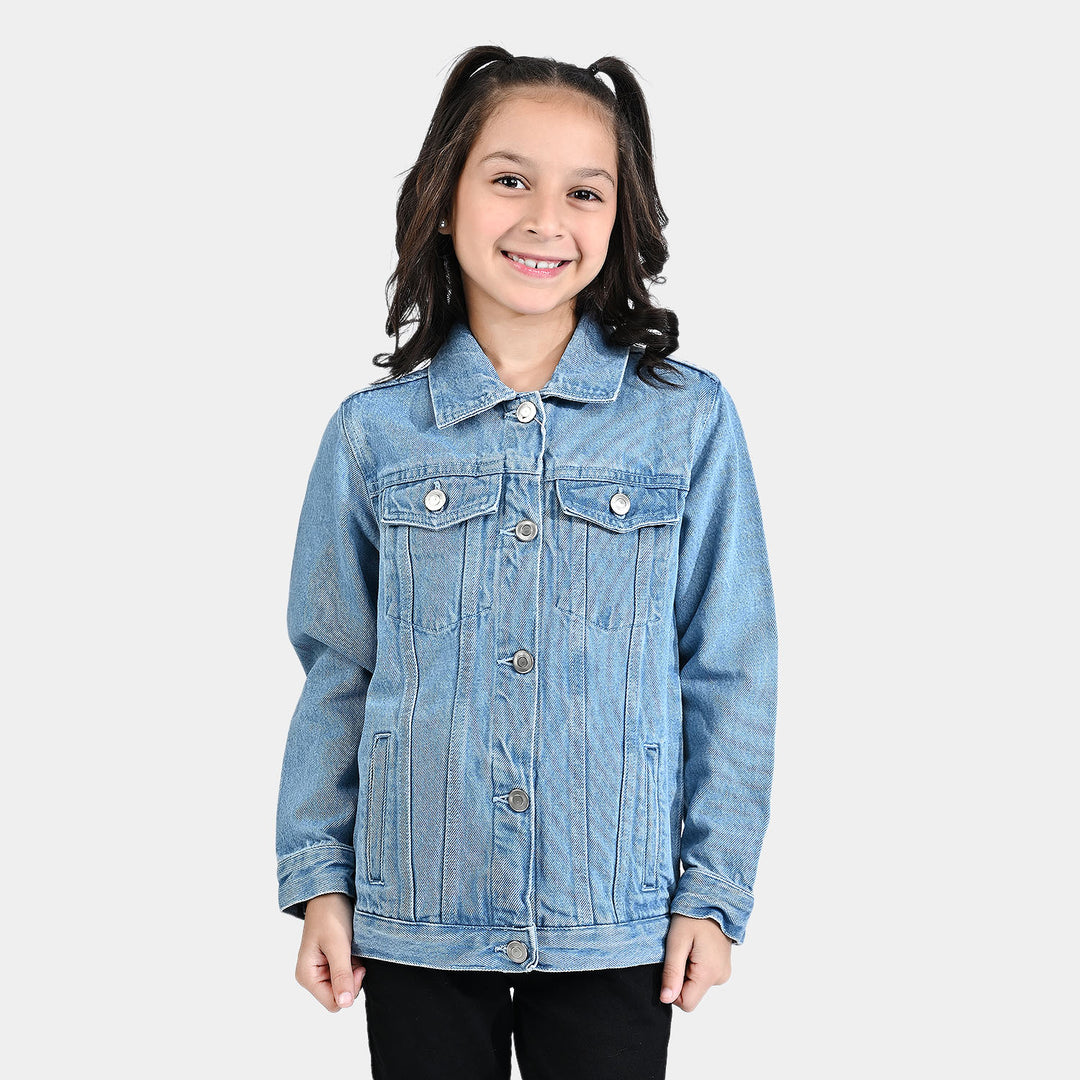 Girls Denim rigid Woven Jacket Basic-Ice Blue