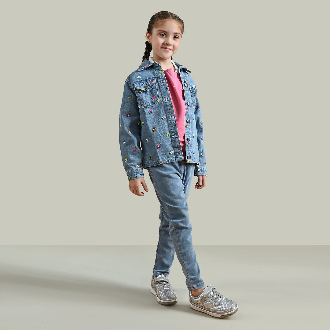 Girls Denim rigid Woven Jacket Flower-LT.Blue
