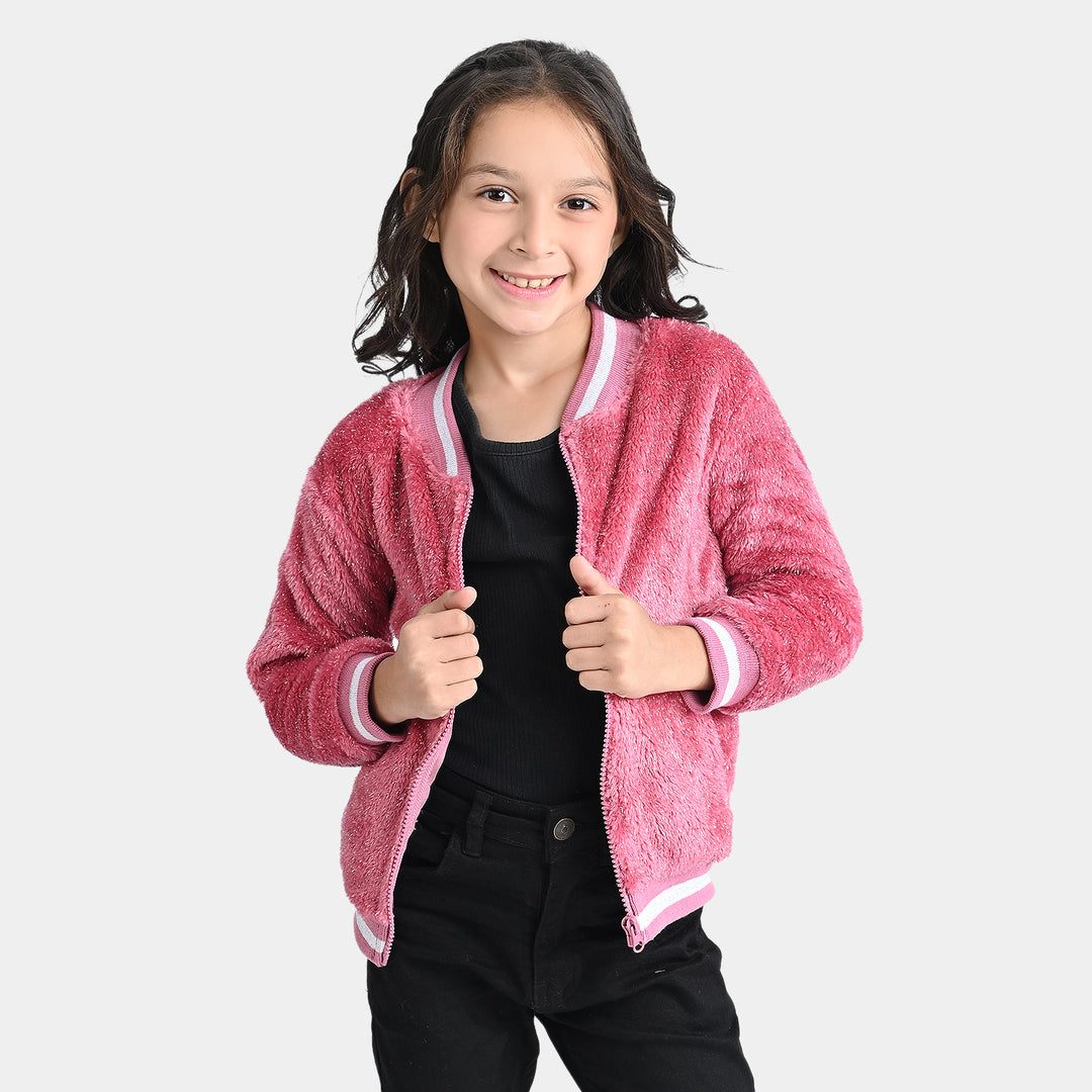 Girls Sherpa With Lurex Knitted Jacket -Pink
