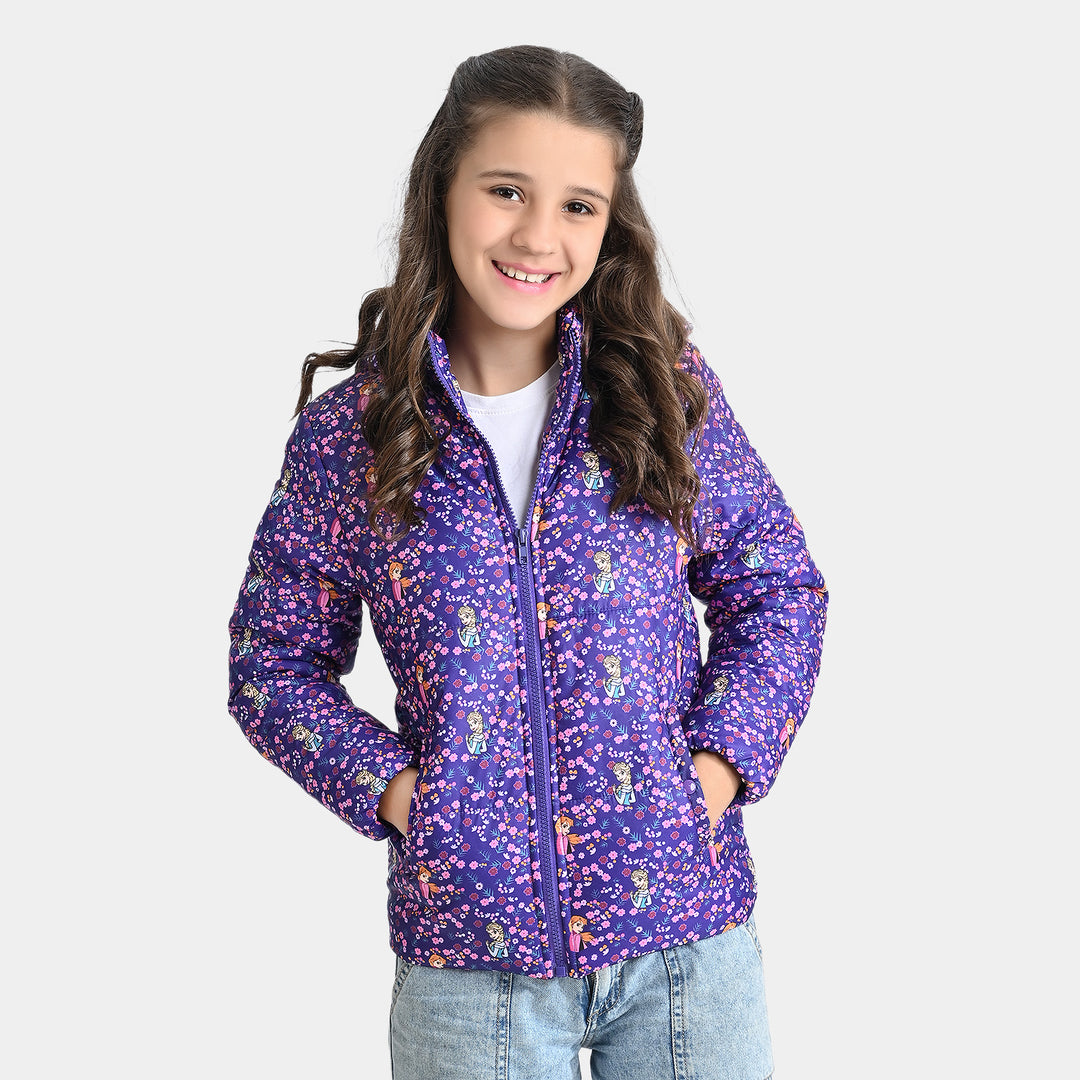 Girls Mix taffeta Quilted Jacket Floral-Printed