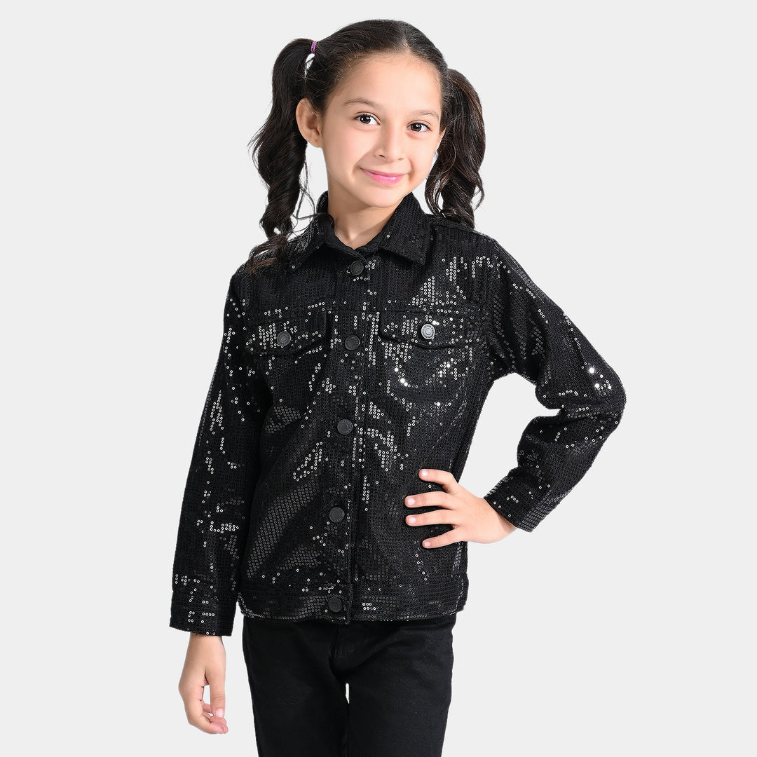 Girls Denim rigid Woven Jacket Sequins Sparkle-BLACK