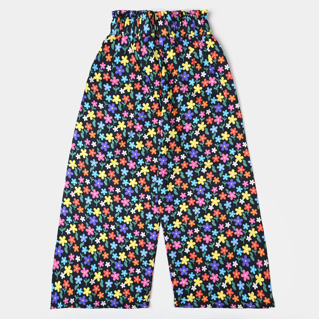 Girls Cotton Viscose Pant Colorful Floral-BLACK
