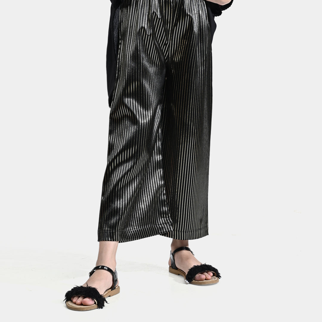 Girls Polyester Pant Lurex Gold Stripes-BLACK