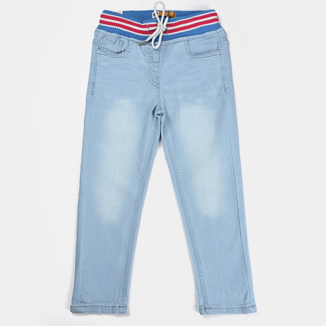 Girls Denim Stretch Pant Rib Waistband-Ice Blue