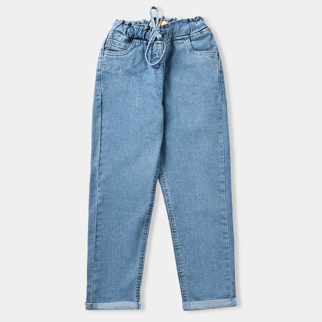 Girls Denim Stretch Pant Basic Straight Fit-Mid Blue