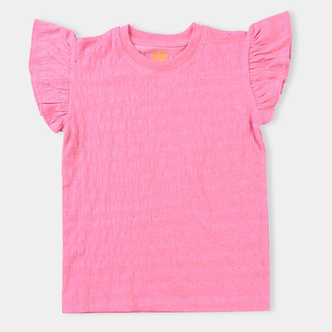Girls Cotton Jersey T-Shirt H/S Texture-Hot Pink