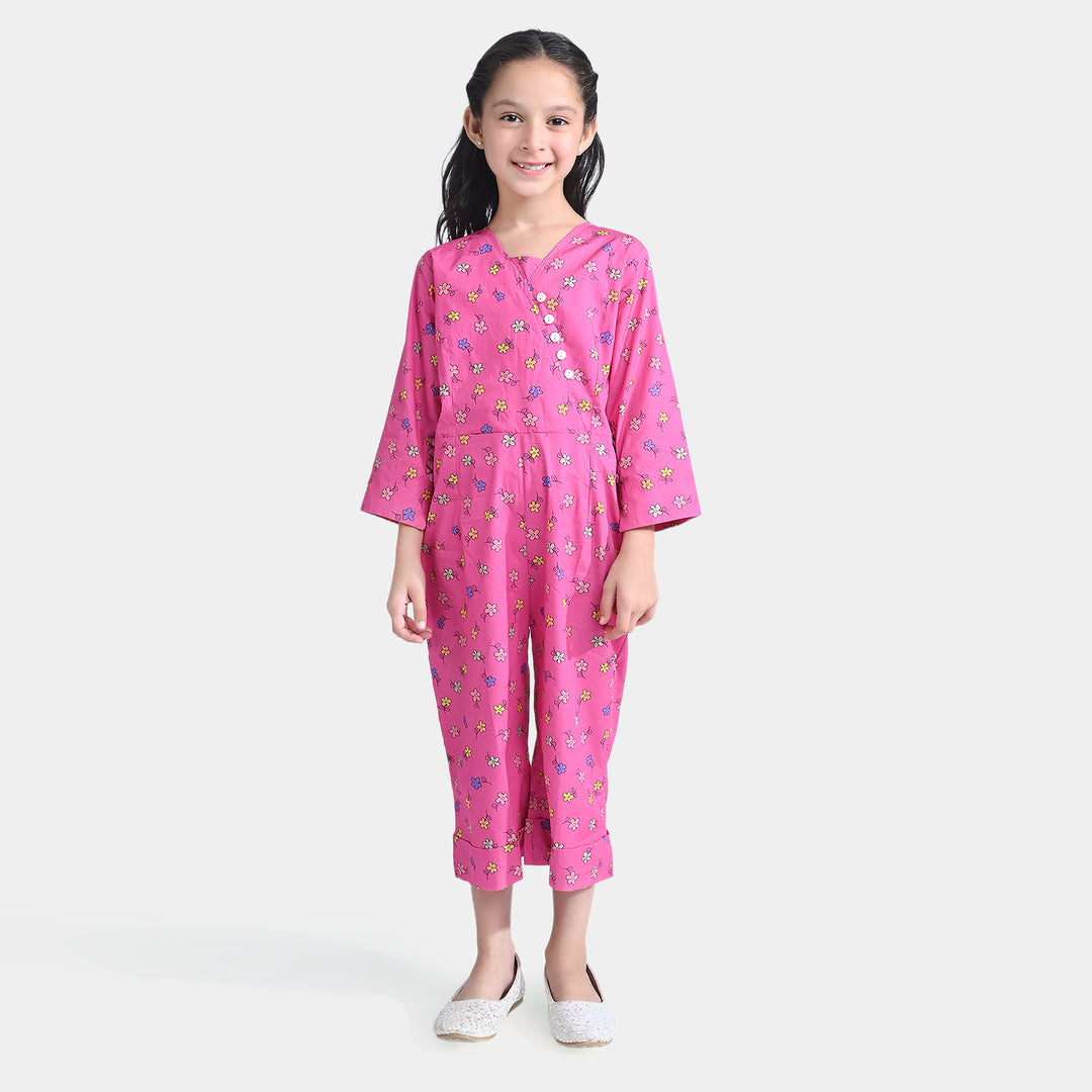 Girls Cotton Viscose Jumpsuit Cape Sleeve-Pink
