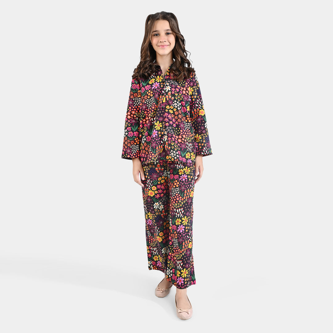 Girls Poly Cambric Printed 2Pcs Suit Floral-Multi
