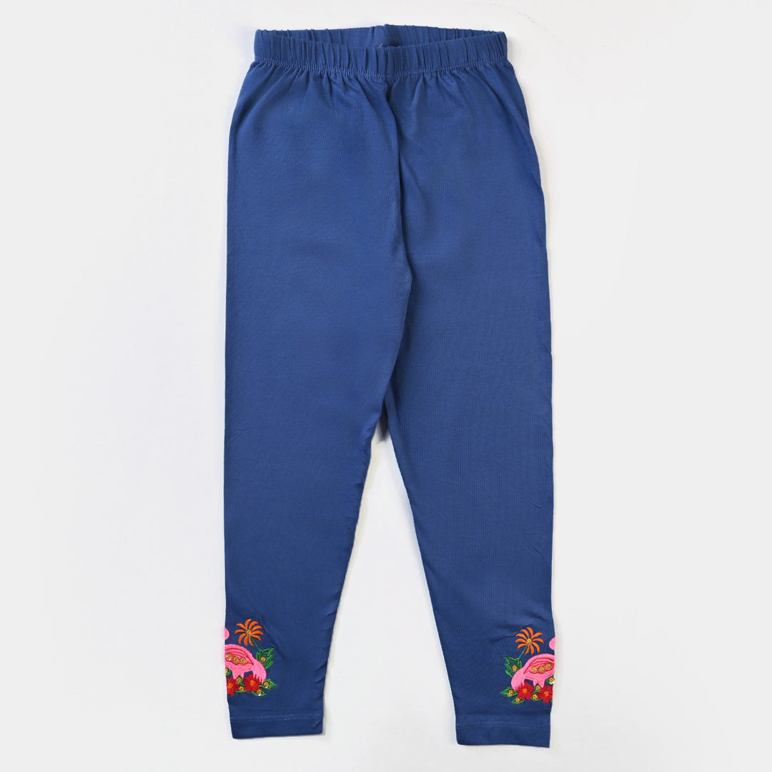 Girls Lycra Jersey Embroidered Tights-True Navy
