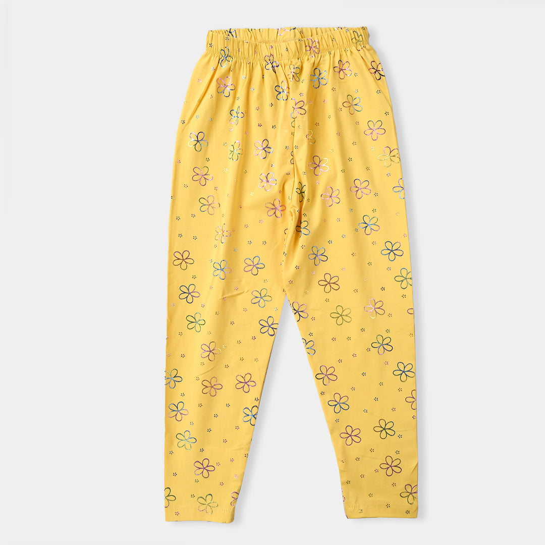 Girls Lycra Jersey Tights Printed Multi Flowers-Yellow