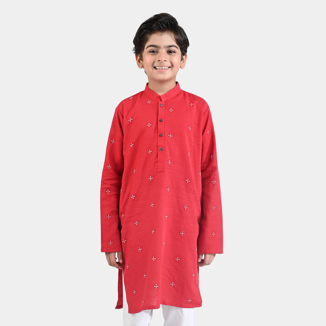 Boys Cotton Slub Printed Kurta (Puff Print)-Red
