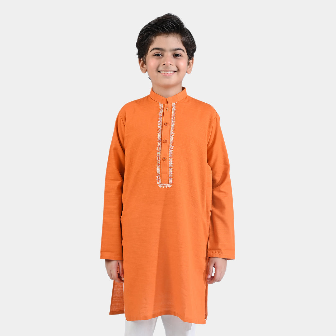 Boys Poly Viscose Basic Kurta (Burn Out)-ORANGE