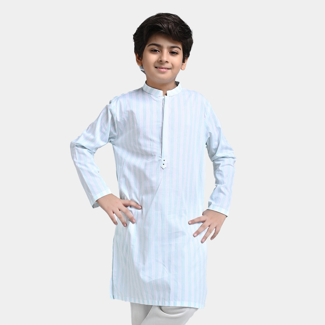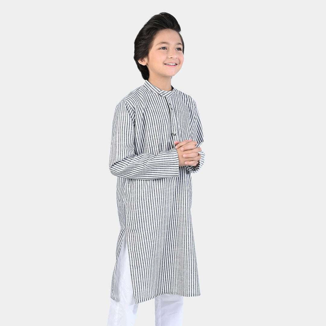 Boys Yarn Dyed Printed Kurta (Metal Loop)-G.Stripe