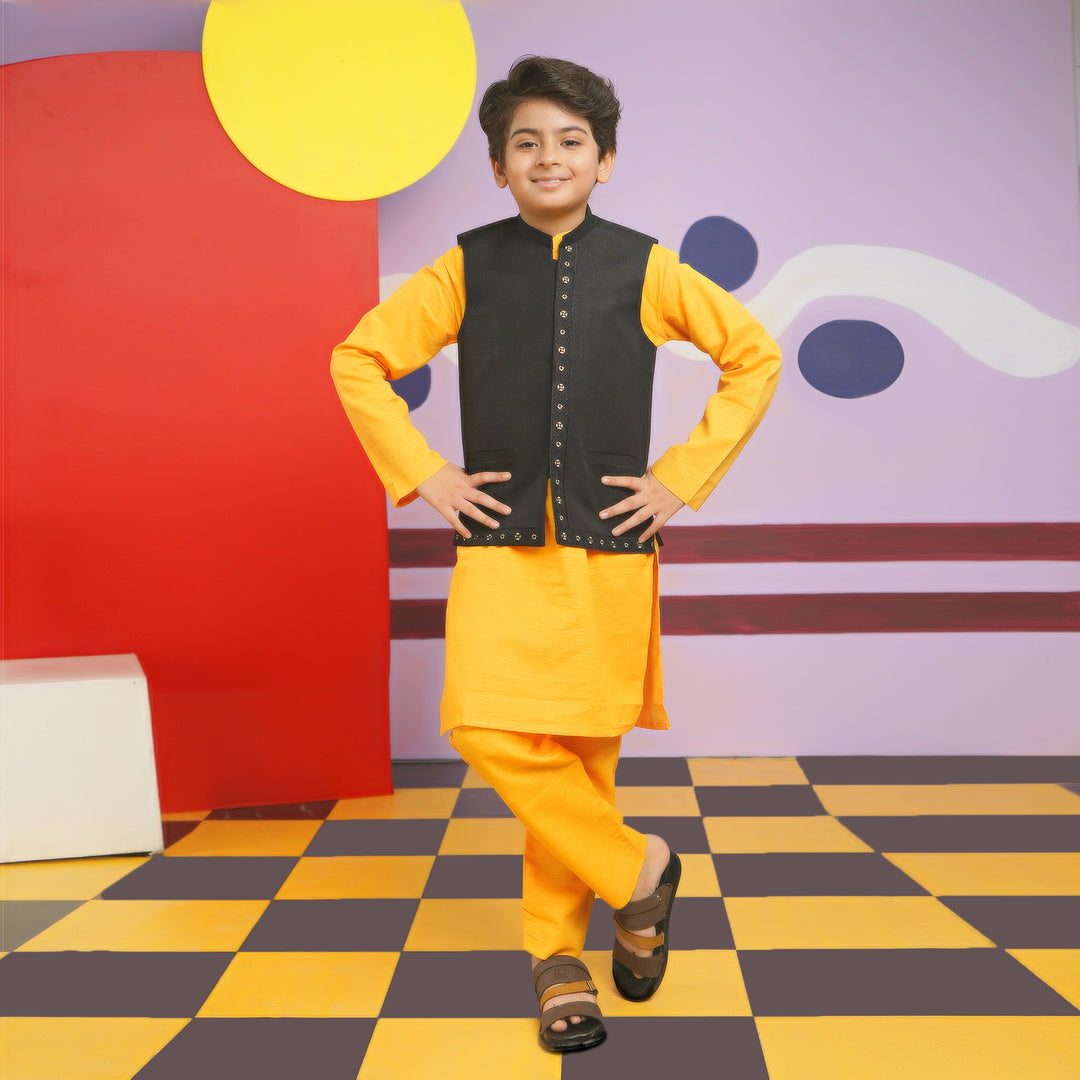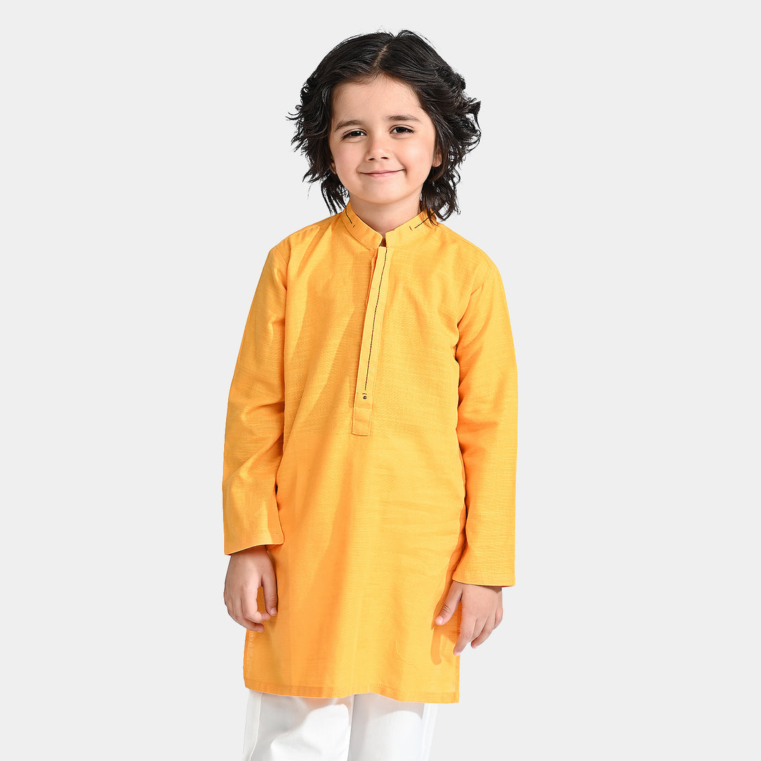 Boys Cotton Slub Basic Kurta (Styling Kurta)-Yellow