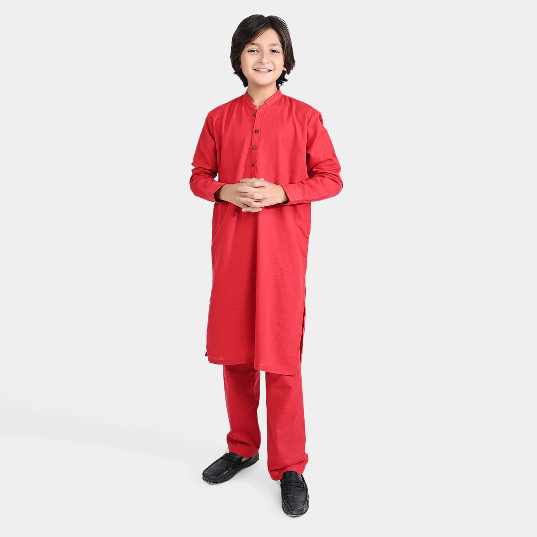 Boys Cotton Slub Shalwar Suit (Cuff Styling)-Reddish