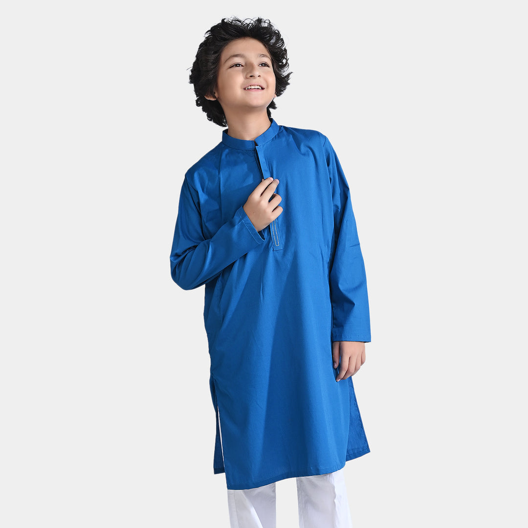 Boys Cotton Poplin Basic Kurta (Running Stitch)-Blue