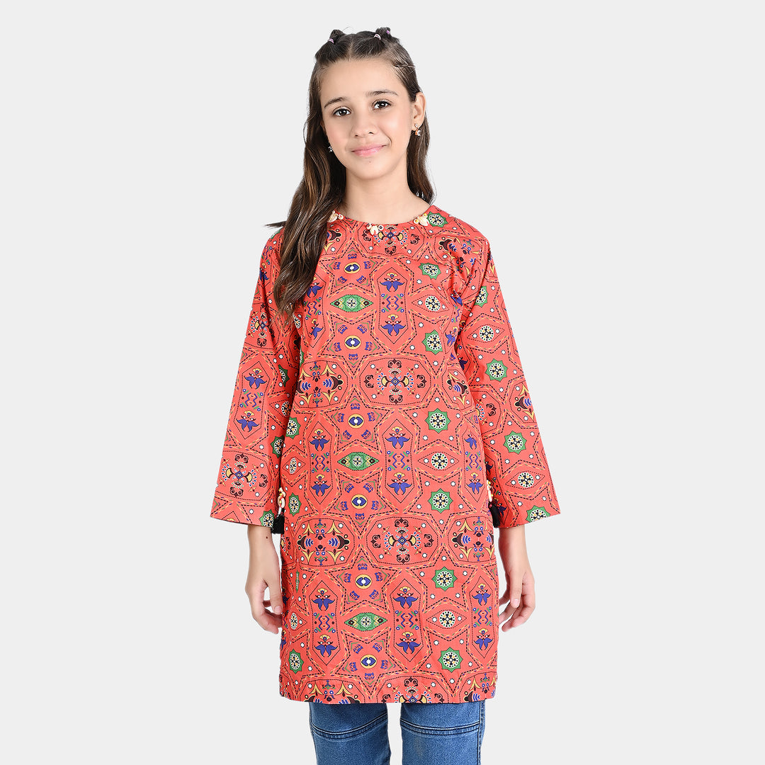 Girls Cotton Poplin Printed Kurti Naranji Phol-ORANGE