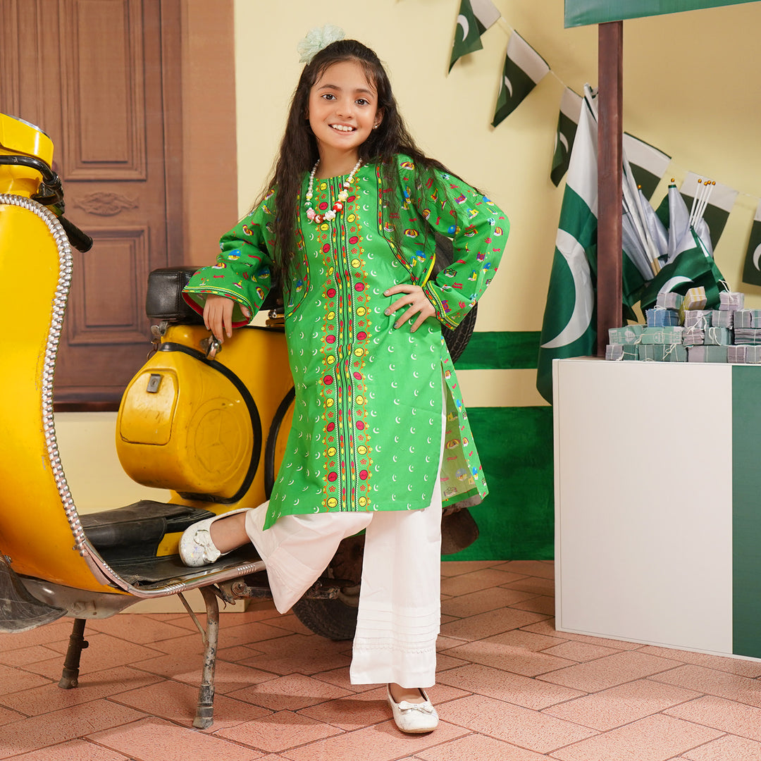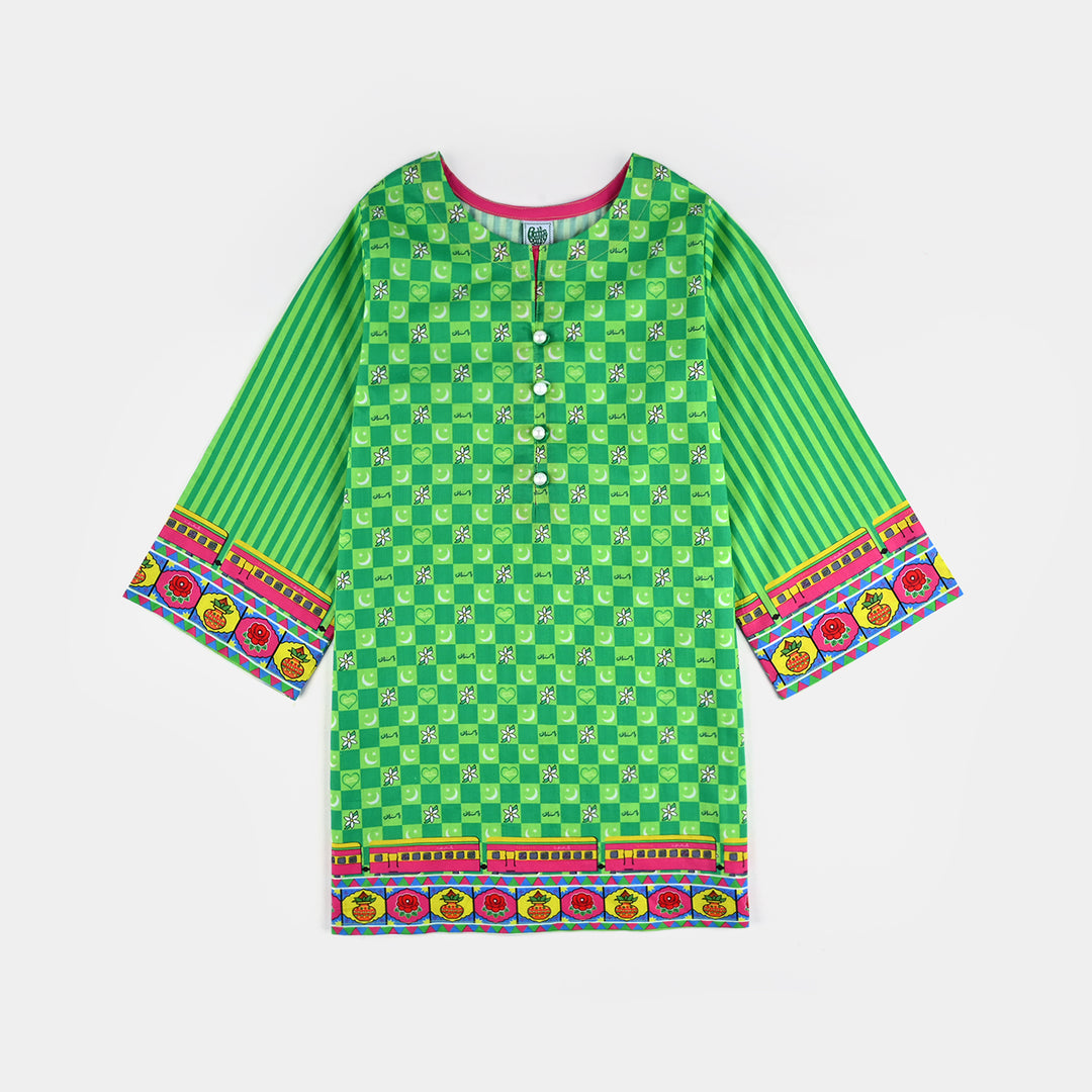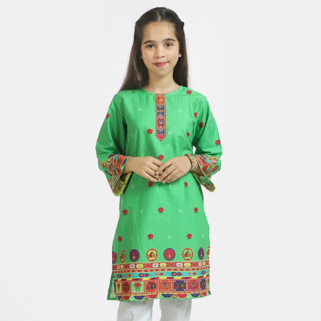 Girls Cotton Printed Kurti Rang -E-Azadi Ind-GREEN