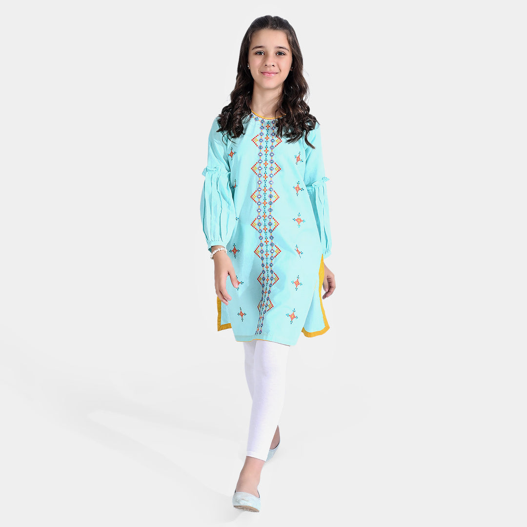 Girls Jacquard EMB. Kurti Traditional-Aqua Green
