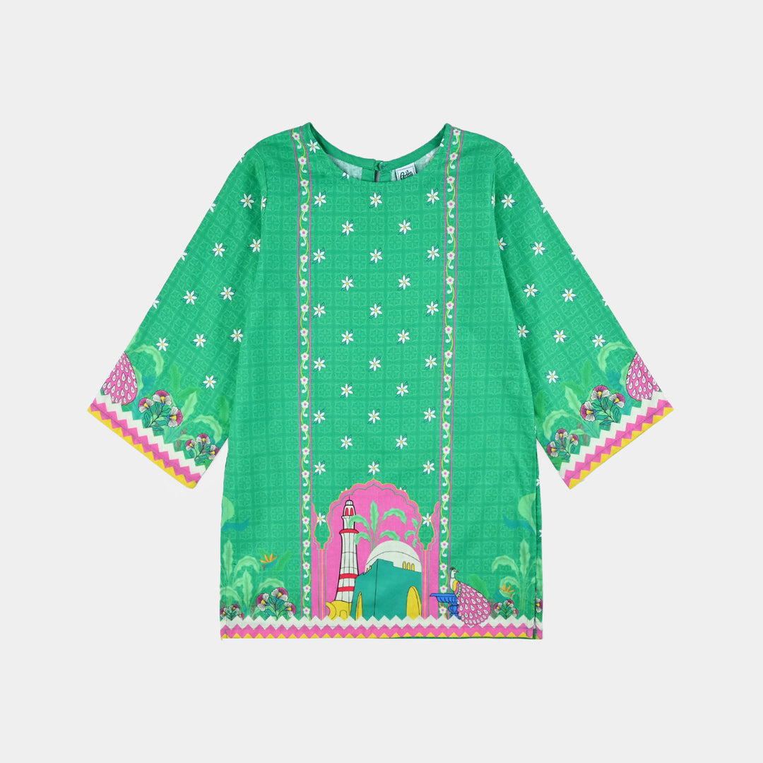 Girls Cotton Printed Kurti Jasmine Ind-L.Green