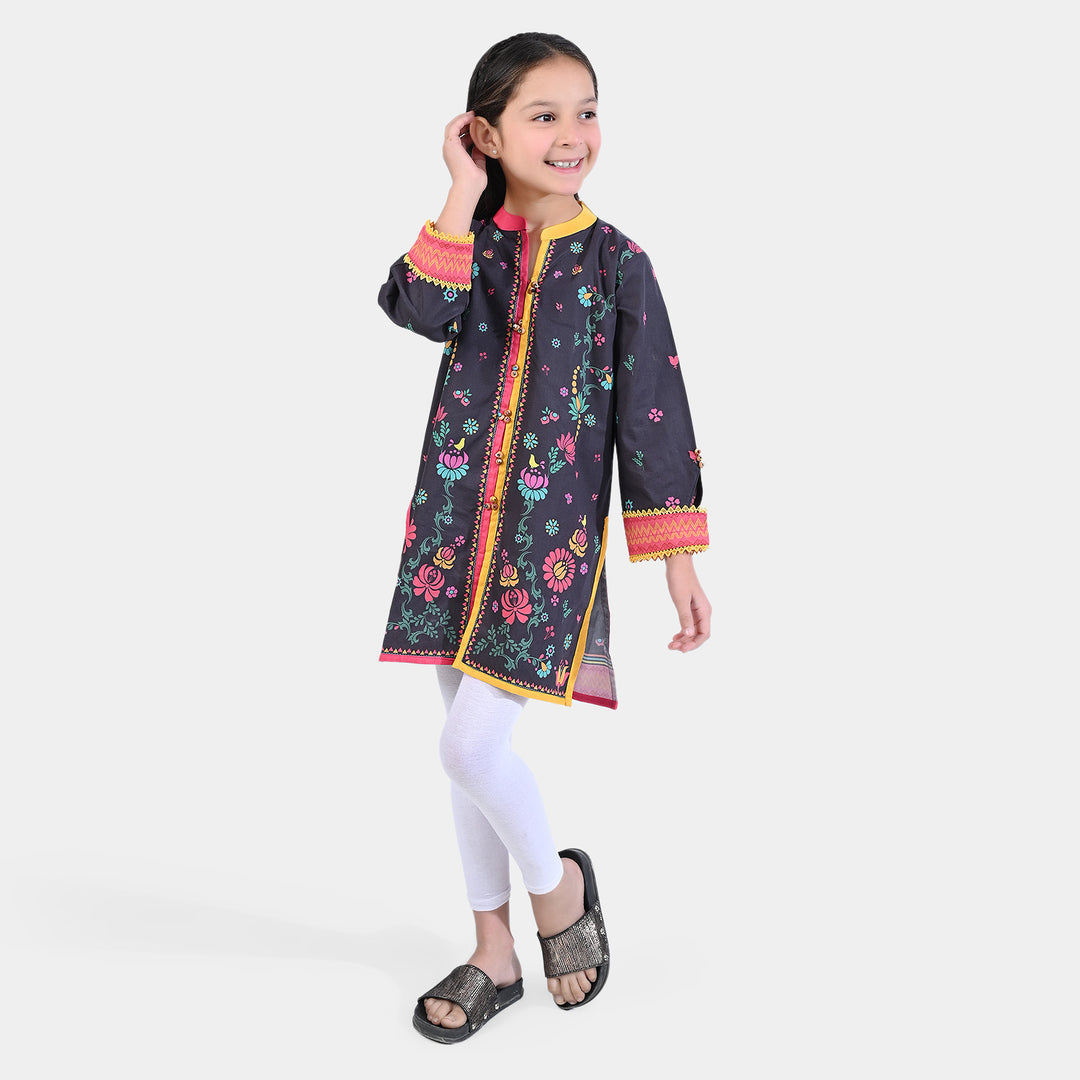 Girls Cotton Poplin Printed Kurti Garden-BLACK