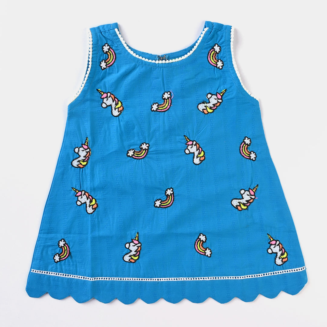Infant Girls Jacquard EMB Kurti Rainbow-Teal blue